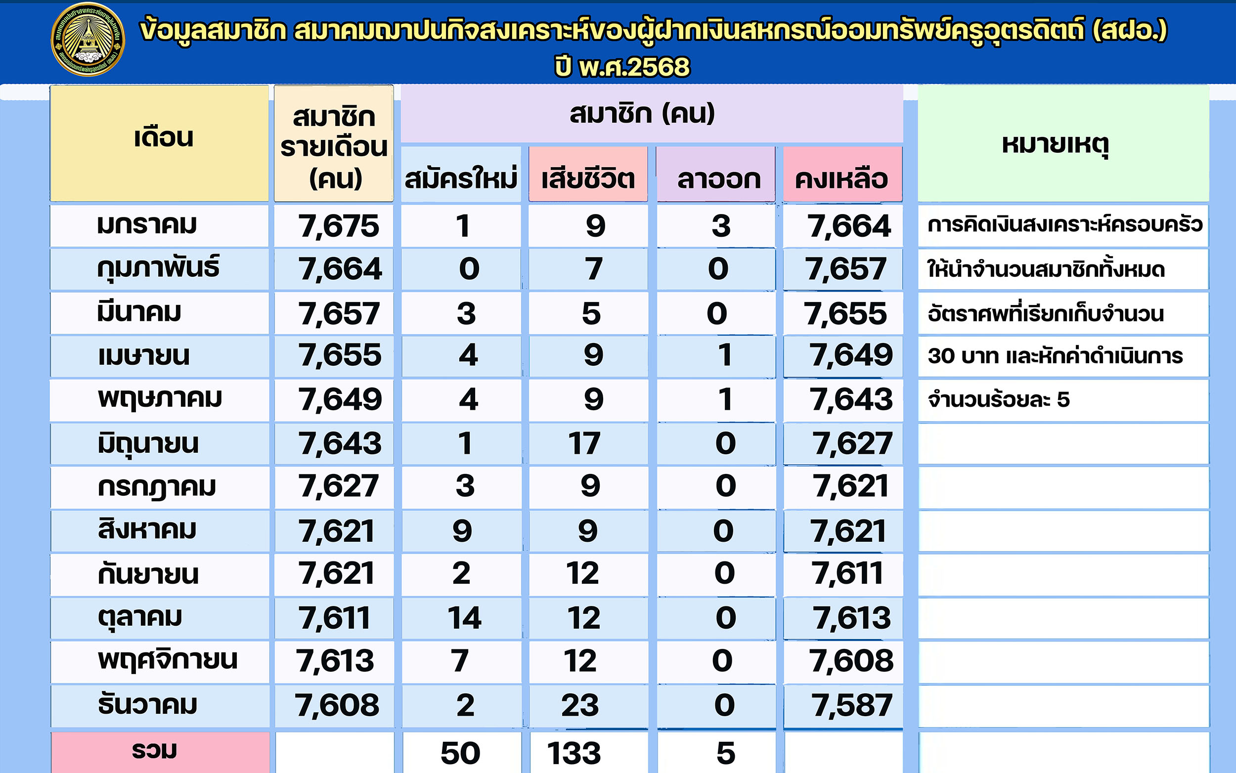 **    ข้อมูลสมาชิกประจำเดือน พฤษภาคม 2568